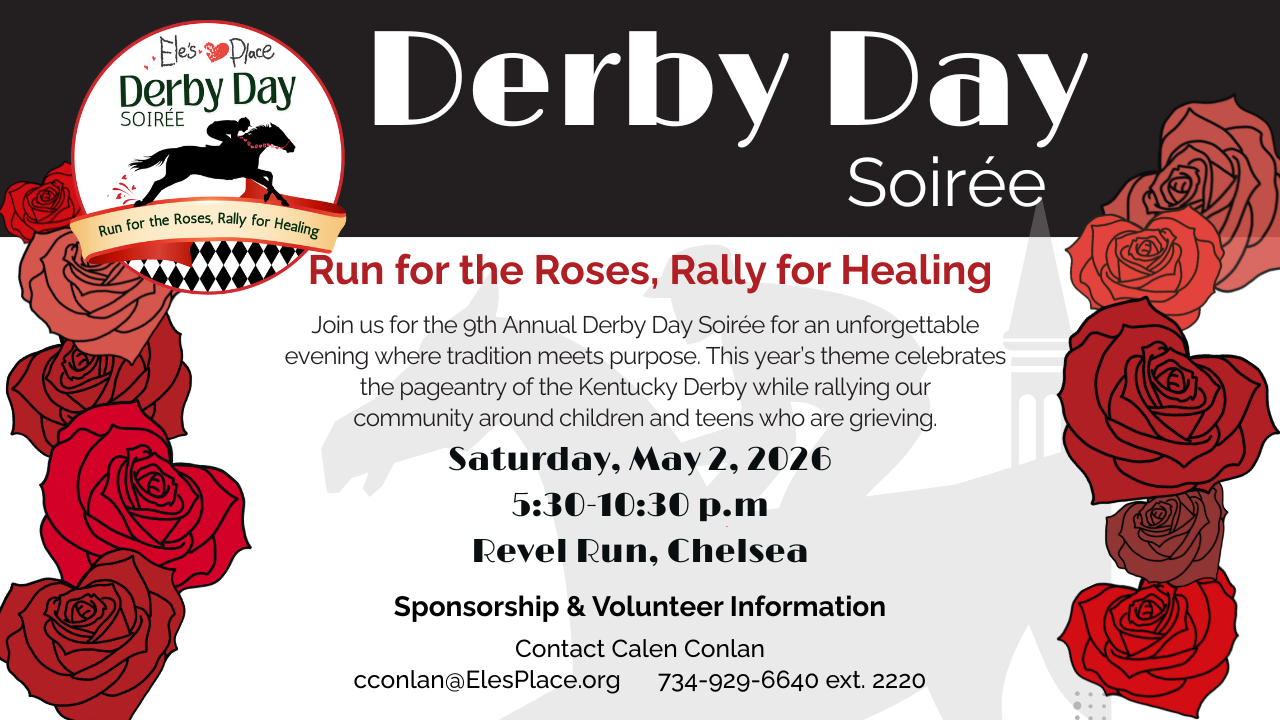 Guests will enjoy live coverage of the Kentucky Derby, silent and live auctions, great food, and an energetic afterglow, all in support of Ele’s Place’s mission to provide free, peer-based grief support to children, teens, and their families.